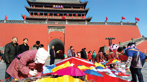 2月17日,市民在忻府區(qū)古城樓廣場觀看能工巧匠們制作、安裝“鼓舞猴年”大型主題燈展。元宵佳節(jié)將至,忻州城區(qū)處處張燈結彩,節(jié)日氣氛越來越濃。(宮清華 攝)