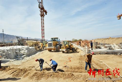 3 月29 日上午,繁峙縣舉辦了項目攻堅百日行動集中開工活動,14 個項目同時開工,項目總投資達21.044 億元。圖為繁峙縣化肥廠棚戶區(qū)改造和公共租賃房屋建設項目施工現場。(喬偉 李曉軍 攝)