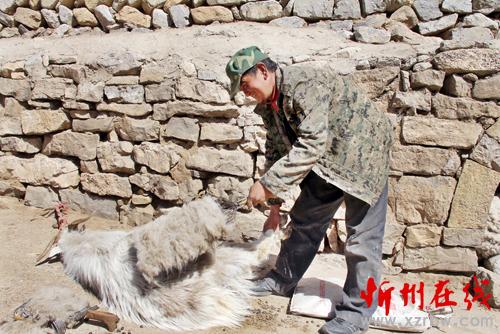 岢嵐縣西豹峪鄉(xiāng)謝家坪村農(nóng)民王占財(cái),通過(guò)十多年努力,成為當(dāng)?shù)剡h(yuǎn)近聞名的養(yǎng)羊大戶。目前,他共飼養(yǎng)了240 余只晉嵐絨山羊,在每年三、四月份的抓絨期,便可收入20000余元。圖為他在抓絨。(李俊武 攝)