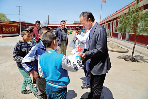 2006 年由省委組織部扶貧工作隊和省僑辦牽線搭橋,由海外華人創(chuàng)建的欣欣教育基金會向靜樂縣康家會小學(xué)捐贈一萬美元資助建設(shè)新校舍,新校舍于2006 年8 月份投入使用。5 月17 日,該基金會副會長丁永慶一行深入靜樂縣,走訪基金會當年捐建的康家會小學(xué)。圖為基金會工作人員在和學(xué)生交談,了解學(xué)?,F(xiàn)在存在的問題和困難,希望與該校保持長期固定的聯(lián)系,以便進一步的交流和幫助。(閆曉梅 攝)
