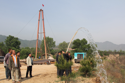千百年來“吃水靠下雨、種地旱死?!钡奈迮_縣茹村鄉(xiāng)東茹村“干南院山”, 如今由“云祥苗木種植專業(yè)合作社” 從五臺農(nóng)商銀行茹村支行貸款20萬元、自籌35萬元,歷時25天,打出了第一眼350米深的巖層水,每小時流量為21立方米。為1.29萬畝山地、700畝耕地,以及擬建的“五臺寶福源愛心養(yǎng)生養(yǎng)老示范基地” 解決了飲用水問題。(金俊賢 鄭光 攝)