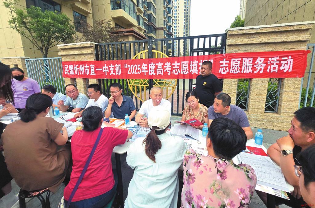 6月25日下午,民盟忻州市直一中支部在市實(shí)驗(yàn)中學(xué)附近開展“2025年度高考志愿填報(bào)”志愿服務(wù)活動(dòng),來自忻州一中和市實(shí)驗(yàn)中學(xué)的盟員、教師耐心地為前來咨詢的家長(zhǎng)和同學(xué)解答填報(bào)志愿方面的問題。 (記者 趙丹琦攝)