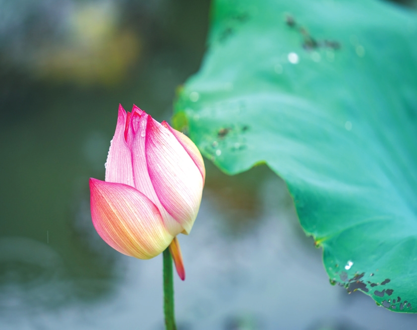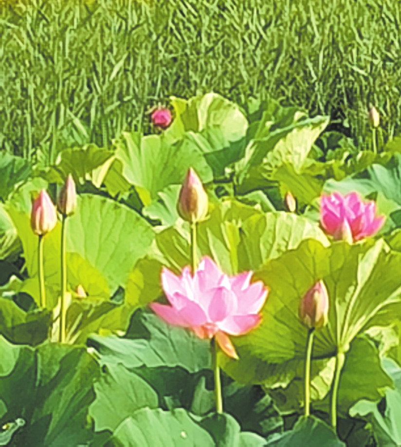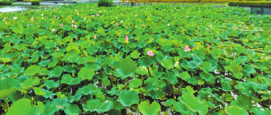 晨霧未散時,“綠云”先漫過了河岸——層層疊疊的荷葉浮在水面,像被風(fēng)吹過的綢緞,葉尖凝著的荷露,是天空落進人間的碎鉆。粉白的荷從“綠云”里探出頭,半開的像未寫完的詩箋,盛放的似被陽光吻過的笑靨,連風(fēng)掠過時都輕了三分,怕驚碎這池溫柔。