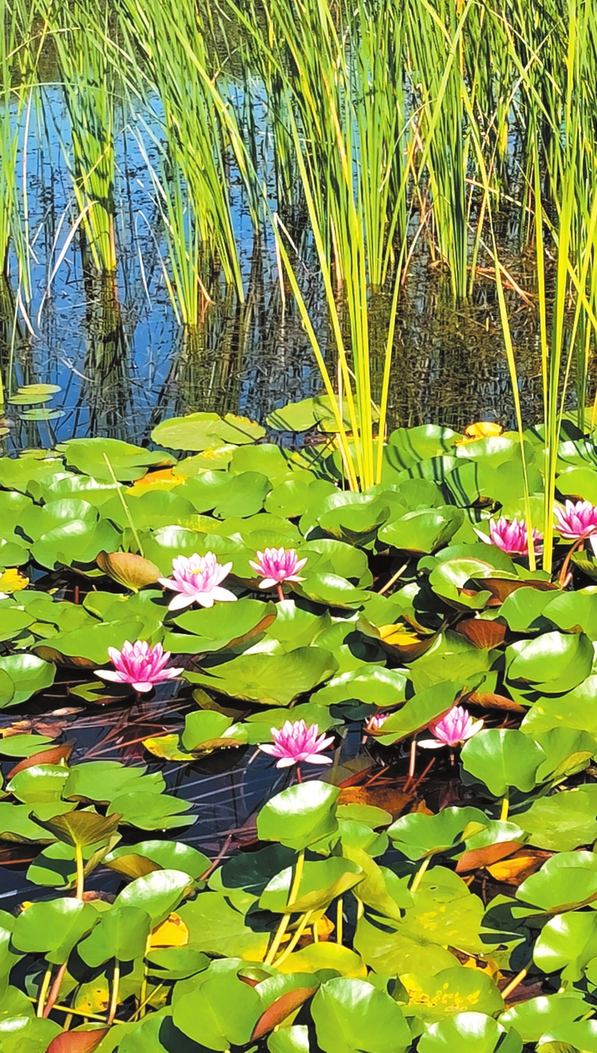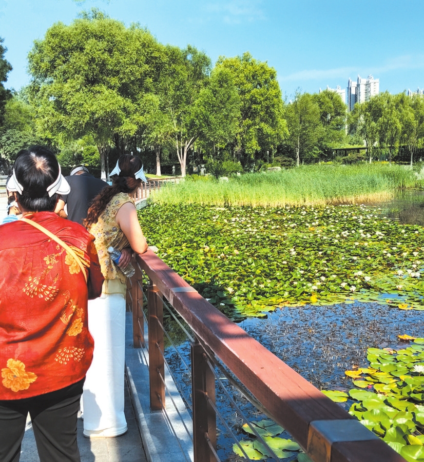 暮色漫上來時,荷塘最是熱鬧。穿花裙的小娃娃踮腳摸蓮蓬,銀發(fā)的老夫妻坐在石凳上數(shù)花瓣,晚歸的人駐了步,手機鏡頭里全是荷的身影。風(fēng)推著荷浪輕搖,像在說:“別急,等你?!?/p>