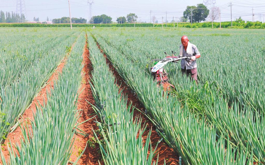 7月23日,記者在忻府區(qū)董村鎮(zhèn)南胡村看到,千畝大蔥長(zhǎng)勢(shì)喜人,農(nóng)民忙碌穿梭于田間,正在對(duì)大蔥進(jìn)行精心管護(hù)。(記者張存良攝)