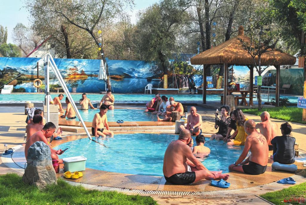 忻府區(qū)溫泉憑借其豐富的地?zé)豳Y源優(yōu)勢和優(yōu)美的自然環(huán)境,吸引了各地游客慕名而來。圖為游客在忻府區(qū)北合索溫泉康養(yǎng)小鎮(zhèn)享受悠閑時光。(記者 張存良攝)