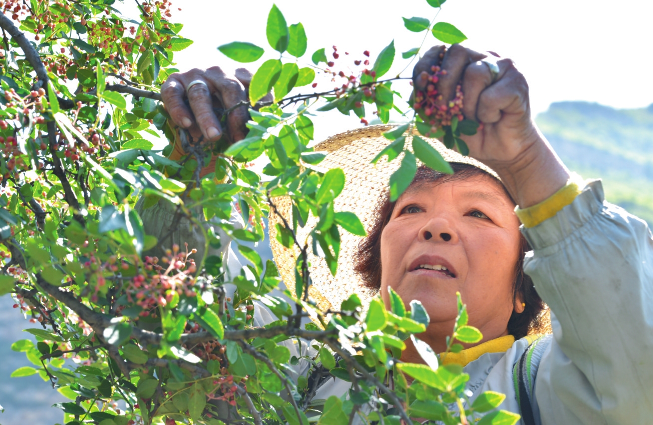 五臺縣陳家莊鄉(xiāng)羅家莊村農(nóng)民采摘花椒。盧俊華攝