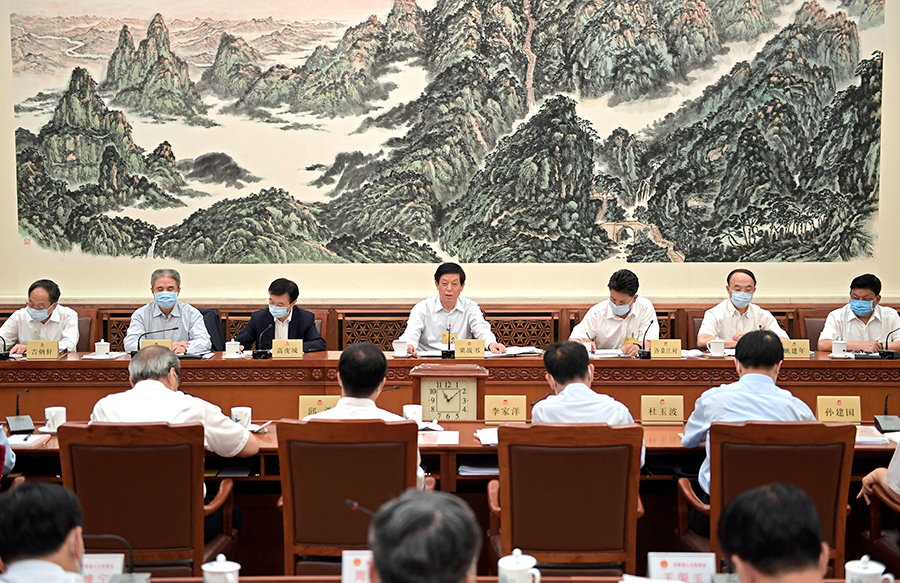6月28日,十三屆全國人大常委會第二十次會議在北京舉行分組會議,審議香港特別行政區(qū)維護(hù)國家安全法草案。栗戰(zhàn)書委員長參加審議。 新華社記者 岳月偉 攝