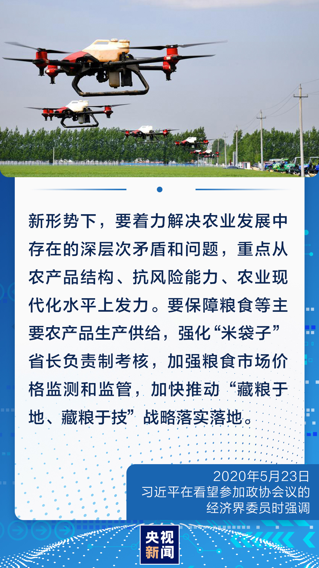 對(duì)我們這樣一個(gè)有著14億人口的大國(guó)來(lái)說(shuō),農(nóng)業(yè)基礎(chǔ)地位任何時(shí)候都不能忽視和削弱,手中有糧、心中不慌在任何時(shí)候都是真理。今年開(kāi)春,習(xí)近平總書記對(duì)全國(guó)春季農(nóng)業(yè)生產(chǎn)工作作出重要指示強(qiáng)調(diào),越是面對(duì)風(fēng)險(xiǎn)挑戰(zhàn),越要穩(wěn)住農(nóng)業(yè),越要確保糧食和重要副食品安全。