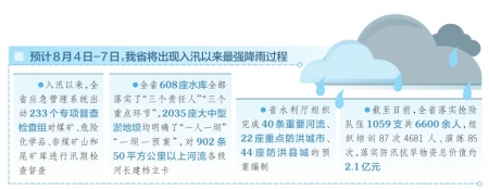 “我們將本著‘有汛無汛隨時(shí)準(zhǔn)備、晴天雨天全員值守’的原則,強(qiáng)化隱患排查和處置力度,嚴(yán)陣以待,嚴(yán)防死守,以百分之一百的準(zhǔn)備應(yīng)對(duì)百分之一的可能,確保全省安全度汛?!毖娬f。(張毅)