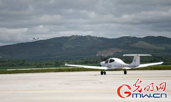 內(nèi)蒙古扎蘭屯成吉思汗機(jī)場,飛行學(xué)員們正在駕駛訓(xùn)練機(jī)進(jìn)行飛行訓(xùn)練。光明網(wǎng)記者 潘迪攝