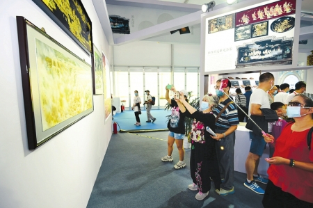 中國藝術(shù)研究院的李亮從專業(yè)角度稱贊參展的推光漆器,“工藝很精細,一看就是大師作品?!?/p>
