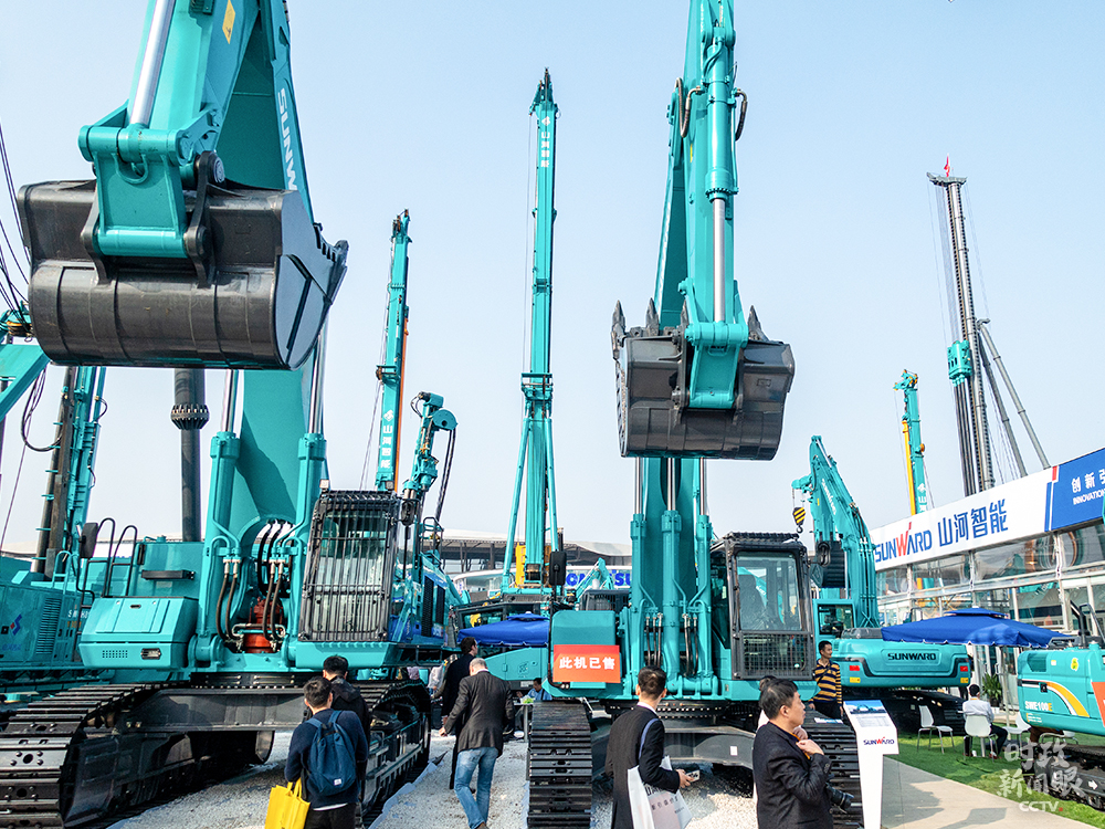 △山河智能的挖掘機(jī)、裝載機(jī)等產(chǎn)品展示