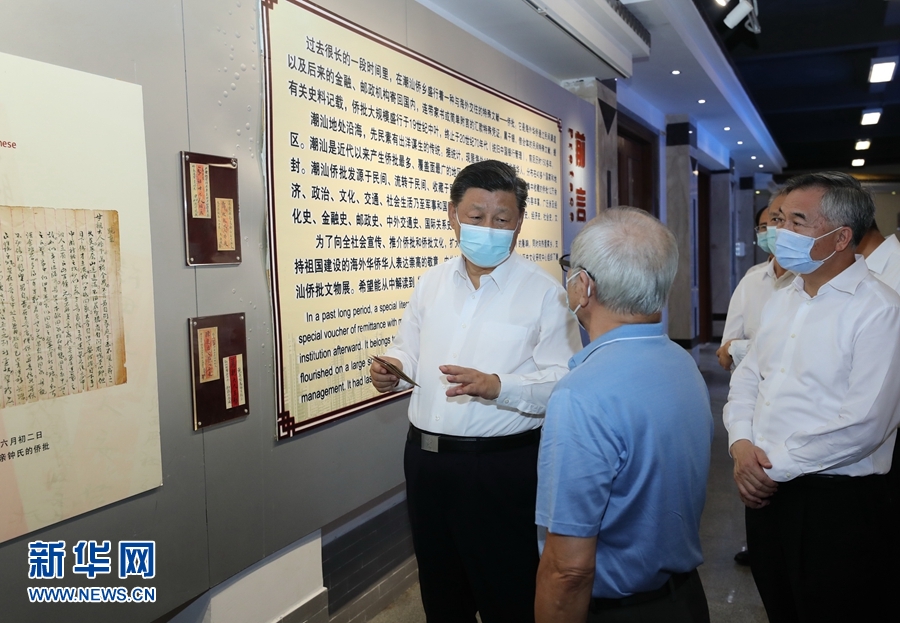 隨后,習(xí)近平參觀了具有潮汕僑鄉(xiāng)特色的僑批文物館。過去很長一段時(shí)間,海外華僑通過民間渠道將連帶家書或簡單附言的匯款憑證寄回國內(nèi),這些“僑批”成為研究近代華僑史的珍貴檔案。習(xí)近平聽取僑批歷史和潮汕華僑文化介紹。他強(qiáng)調(diào),“僑批”記載了老一輩海外僑胞艱難的創(chuàng)業(yè)史和濃厚的家國情懷,也是中華民族講信譽(yù)、守承諾的重要體現(xiàn)。要保護(hù)好這些“僑批”文物,加強(qiáng)研究,教育引導(dǎo)人們不忘近代我國經(jīng)歷的屈辱史和老一輩僑胞艱難的創(chuàng)業(yè)史,并推動(dòng)全社會(huì)加強(qiáng)誠信建設(shè)。潮汕地區(qū)是我國著名僑鄉(xiāng)。汕頭經(jīng)濟(jì)特區(qū)要根據(jù)新的實(shí)際做好“僑”的文章,加強(qiáng)海外華僑工作,引導(dǎo)和激勵(lì)他們?cè)谥С趾蛥⑴c祖國現(xiàn)代化建設(shè)、弘揚(yáng)中華文化、促進(jìn)祖國和平統(tǒng)一、密切中外交流合作等方面發(fā)揮更大作用。