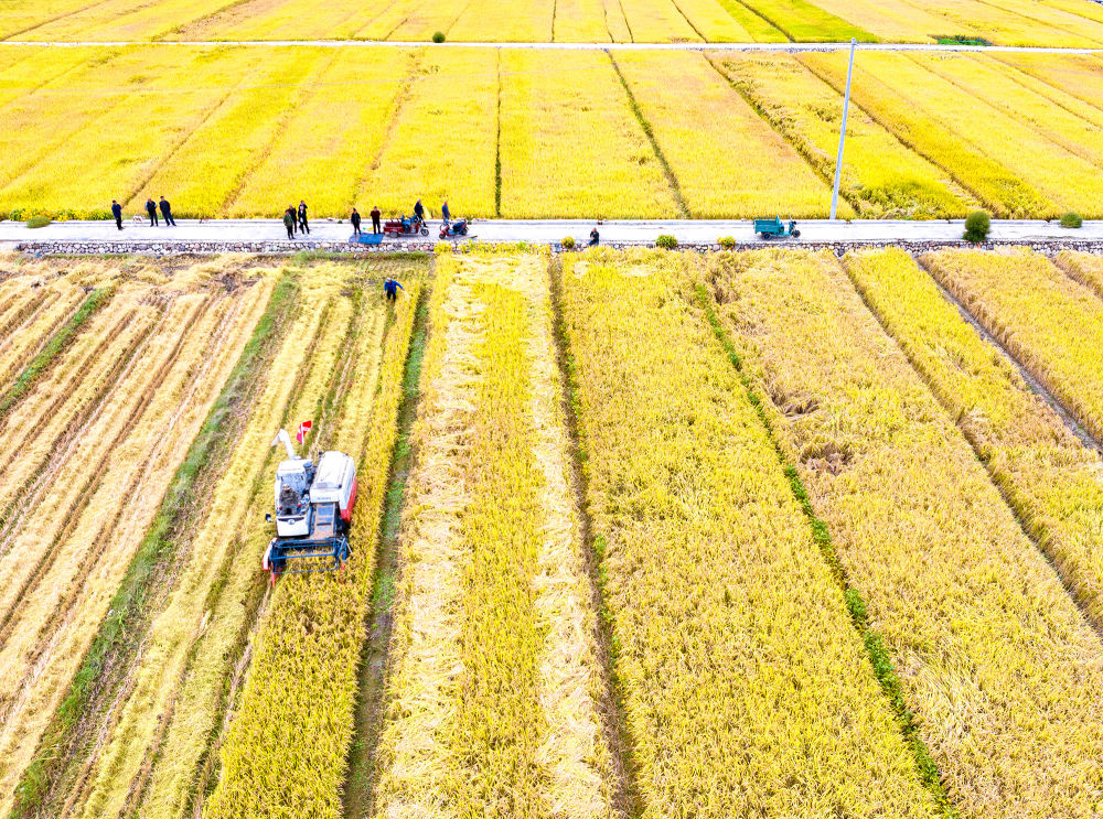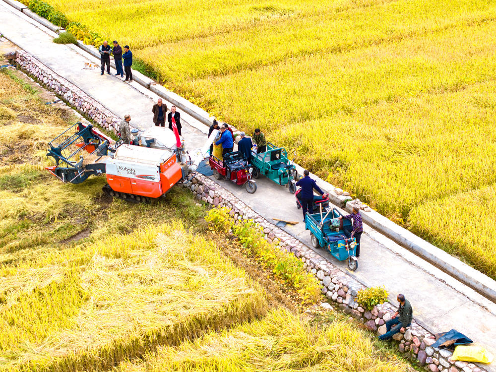 今年,當?shù)赜晁渑?,光照充足,水稻長勢喜人。沉甸甸的稻穗壓彎了稻稈,預計畝產(chǎn)將再創(chuàng)新高。這片金色的豐收畫卷,不僅展現(xiàn)了現(xiàn)代農(nóng)業(yè)的高效作業(yè),更見證了農(nóng)民們辛勤勞作的碩果,為這個秋天增添了最動人的色彩。(張文軍)