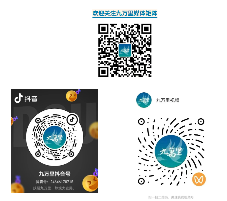 面對(duì)動(dòng)蕩變革的當(dāng)今世界,“九萬(wàn)里”為我們?nèi)姘盐諊?guó)際國(guó)內(nèi)形勢(shì),增強(qiáng)處事應(yīng)變能力,塑造大視野戰(zhàn)略格局提供強(qiáng)有力幫助。為了讓大家更直觀地關(guān)注和學(xué)習(xí)當(dāng)下國(guó)際國(guó)內(nèi)形勢(shì),“九萬(wàn)里”不僅推出了微信公眾號(hào),而且還推出了“九萬(wàn)里”微信視頻號(hào)和“九萬(wàn)里”抖音號(hào)。