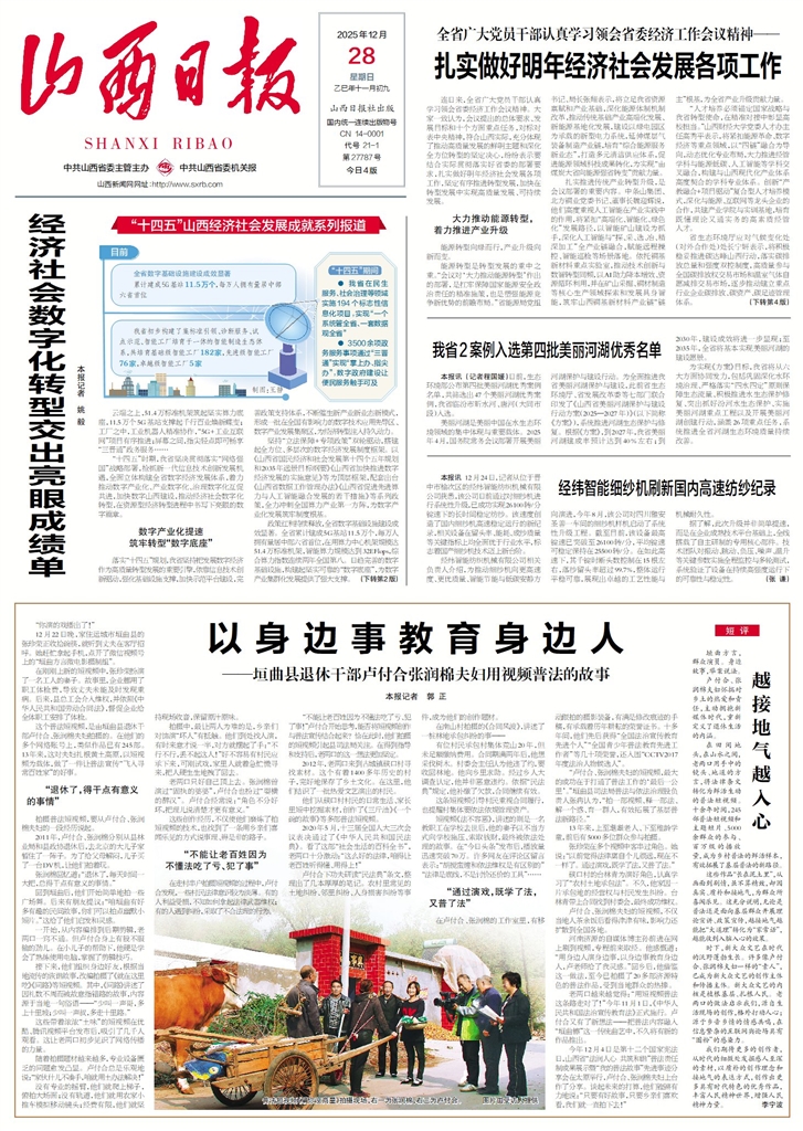 今年12月4日是第十二個國家憲法日,山西省“法潤人心 共筑和諧”普法責(zé)任制成果展示暨“我的普法故事”先進事跡分享會在太原舉行,盧付合、張潤棉夫婦上臺作了分享。談起未來的打算,他們鏗鏘有力地說:“只要有好故事,只要鄉(xiāng)親們喜歡看,我們就一直拍下去!”(記者 郭 正)