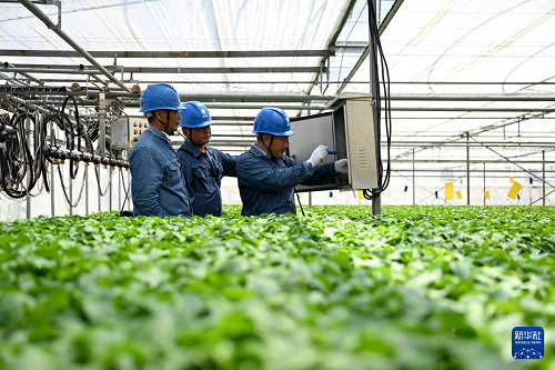 8月26日,在和縣綠緣溫室科技有限公司,國網(wǎng)馬鞍山供電公司的工作人員在檢修電力設(shè)施保障企業(yè)用電需求。(新華社記者 黃博涵 攝)