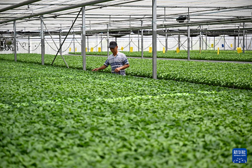 8月26日,工作人員在和縣綠緣溫室科技有限公司管護(hù)辣椒秧苗。(新華社記者 黃博涵 攝)