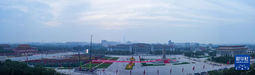 9月3日清晨拍攝的天安門廣場。(新華社記者 朱崢 攝)