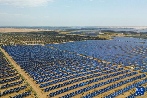 內(nèi)蒙古鄂爾多斯市達拉特旗境內(nèi)的庫布其沙漠里,一塊塊藍色光伏板鱗次櫛比、鋪陳排開,將沙海變成綠能涌動的“藍海”。近年來,達拉特旗依托光伏基地建設(shè),推廣應(yīng)用“光伏治沙”模式,實現(xiàn)光伏板上發(fā)綠電,板下治理沙漠生態(tài),既帶動新能源產(chǎn)業(yè)發(fā)展,也促進庫布其沙漠治理。
