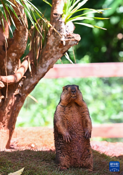 這是9月14日在海南熱帶野生動植物園拍攝的旱獺。(新華社記者 楊冠宇 攝)