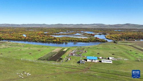 這是9月15日在內(nèi)蒙古呼倫貝爾市額爾古納市拍攝的濕地風(fēng)光(無(wú)人機(jī)照片)。(新華社記者 貝赫 攝)