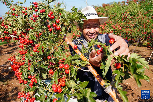 近日,山東省新泰市山楂陸續(xù)成熟,當(dāng)?shù)毓r(nóng)忙著進(jìn)行山楂收獲、運輸、存儲等工作。近年來,新泰市因地制宜發(fā)展山楂產(chǎn)業(yè),當(dāng)?shù)厣介N植面積達(dá)4.7萬余畝,山楂產(chǎn)業(yè)已成為帶動當(dāng)?shù)厝罕娫鍪罩赂坏奶厣a(chǎn)業(yè)。