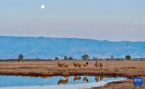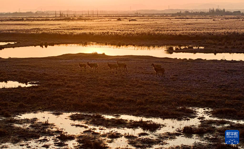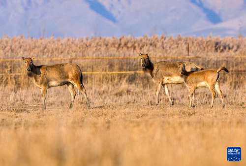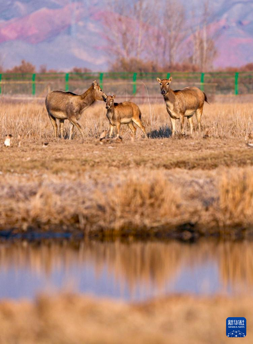 青銅峽庫區(qū)濕地自然保護區(qū)總面積174.93平方公里,是寧夏最大的黃河灘涂類型濕地。2024年9月底,35頭麋鹿落戶青銅峽庫區(qū)濕地自然保護區(qū),經(jīng)過一個月適應期后被野放在200余畝的圍欄內(nèi)。目前,隨著6只麋鹿幼崽的誕生,當?shù)伧缏狗N群繁育工作邁入新階段,放歸區(qū)域從200余畝擴展至3000余畝,保護工作也從遷地擴繁轉(zhuǎn)向野化放歸,開啟了黃河流域?qū)幭亩紊锒鄻有员Wo的新篇章。