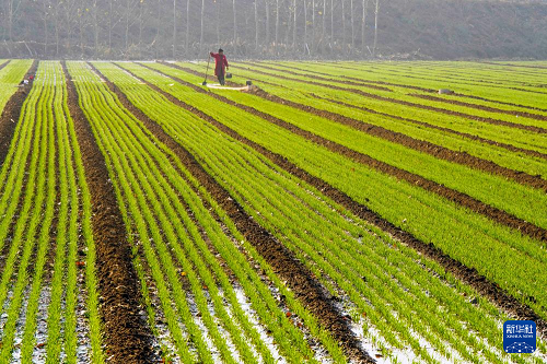 11月11日,河北省遵化市東新莊鎮(zhèn)農(nóng)民給冬小麥澆水。(新華社發(fā) 劉滿倉 攝)