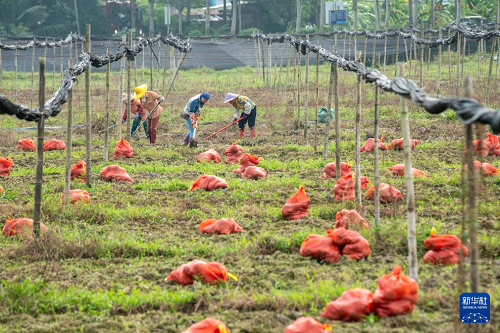 12月7日,海南省瓊海市嘉積鎮(zhèn)紅星社區(qū)農(nóng)民在種植魔芋。(新華社發(fā) 蒙鐘德 攝)