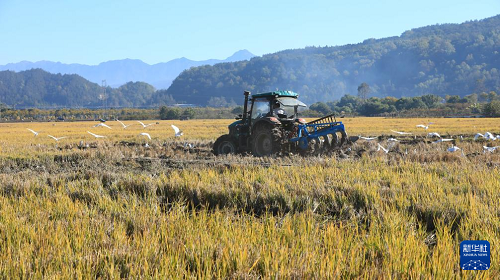 12月7日,云南省騰沖市和順鎮(zhèn)大莊村農(nóng)民駕駛農(nóng)機翻耕稻田,準備種植冬季馬鈴薯。(新華社發(fā) 龔祖金 攝)