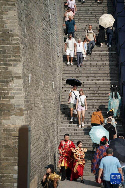 趙彬在西安城墻永寧門內(nèi)(2025年9月12日攝)。(新華社記者 邵瑞 攝)