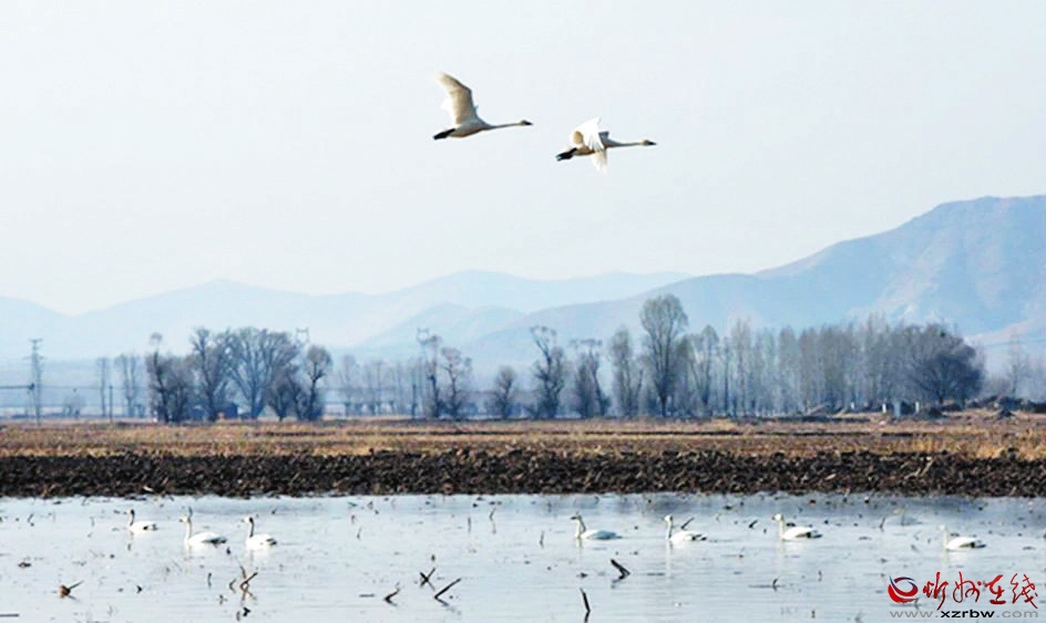 近日,在定襄縣受祿鄉(xiāng)附近的一片水域內(nèi),成群的天鵝擇水而棲,有的展翅秀舞姿,有的追逐互嬉戲。白羽翩翩,優(yōu)雅靈動,成為一道亮麗的風(fēng)景。