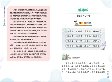 該書(shū)選取繼承權(quán)、高鐵霸座、高利貸、高空拋物等百姓經(jīng)常遇到和關(guān)心的熱點(diǎn)問(wèn)題,結(jié)合法律知識(shí)與中華傳統(tǒng)文化,以三字一句的形式,配之經(jīng)典案例和四格漫畫(huà),增強(qiáng)了普法宣傳的感染力。(孝金波、劉霞)