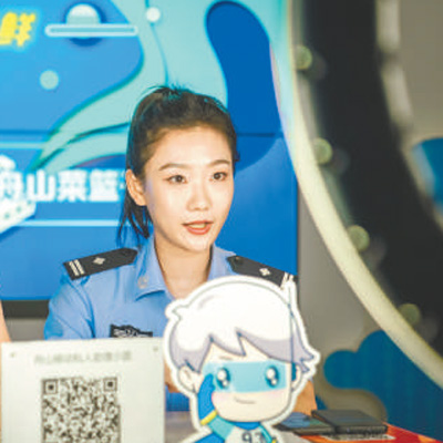 浙江省舟山市公安局反詐中心民警通過網(wǎng)絡(luò)直播傳授電信網(wǎng)絡(luò)詐騙防范知識。鄒訓(xùn)勇攝(人民視覺)