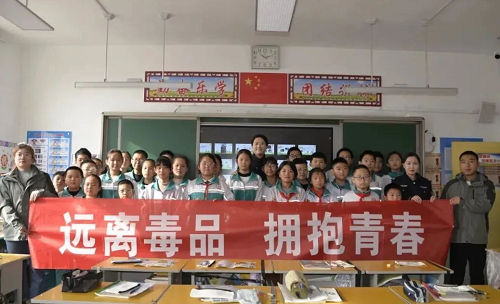 活動尾聲,在民警的帶領(lǐng)下,全體同學(xué)高舉右拳,莊嚴(yán)宣誓,“珍愛生命,遠(yuǎn)離毒品,防毒拒毒,從我做起”鏗鏘有力的誓言回蕩在校園,既展現(xiàn)了同學(xué)們抵制毒品的堅(jiān)定決心,也讓“晉善警美”的法治理念深深扎根于青少年心中。