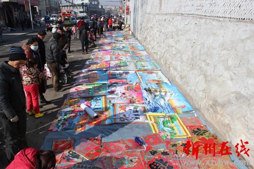 2月1日,在原平市新原鄉(xiāng)解放街村的農貿市場上,村民們正在選購年畫。過年了,不少農村都在集市上選購年畫、春聯(lián)、窗花、燈籠、掛件,準備過個祥和喜慶的猴年春節(jié)。(曹申義 攝)