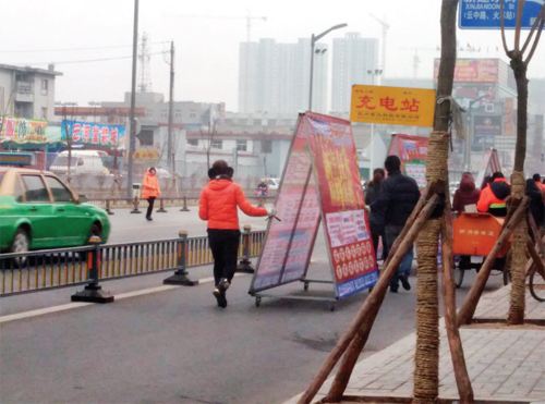 占用非機動車道進行廣告宣傳(王國棟 攝)