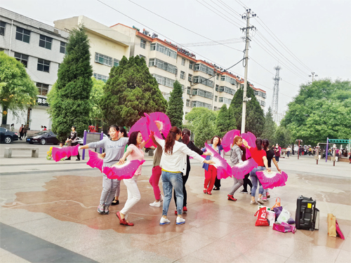 繁峙縣充分發(fā)揮鄉(xiāng)村文化陣地作用,不定期舉辦群眾喜聞樂見的文體活動,不斷豐富農(nóng)民群眾的業(yè)余文化生活,達(dá)到弘揚(yáng)現(xiàn)代文化,摒除惡習(xí)的目的。圖為社區(qū)居民正在習(xí)練扇子舞。(喬偉 攝)