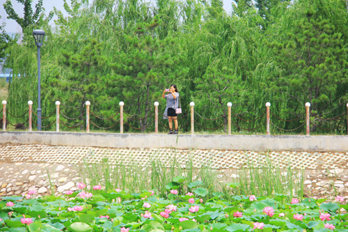 7月21日,原平市滹沱河生態(tài)公園游人正在賞荷花,品味其美麗。七月的荷花,飄香過(guò)池,清新自然的氣息,讓人心曠神怡!而在淅淅瀝瀝的細(xì)雨后賞荷花,又是一種情境:少了日曬的悶熱,或漫步荷池小道,或跨上拱橋,或合上雨傘,盡情享受雨后的清涼,欣賞池中荷花的千姿百態(tài)。