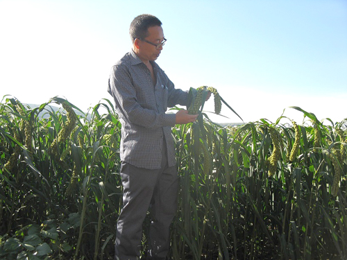 8月16日,山西省偏關縣氣象局農(nóng)業(yè)氣象服務人員,深入本縣老營鎮(zhèn)老營村,調(diào)研“張雜谷”生長的氣象條件,指導農(nóng)民防御自然災害。今年,受厄爾尼諾影響,偏關縣降水正常偏多,但極端天氣頻發(fā),僅暴雨就下了三次,冰雹下了三到四次,大風出現(xiàn)了一次。可喜的是降水多“張雜谷”長勢喜人,谷穗長的大而粗。農(nóng)民最擔心的是大風、冰雹和霜凍,三種災害都會造成“張雜谷”減產(chǎn),甚至顆粒無收。農(nóng)業(yè)氣象人員向農(nóng)民講解了防御三種氣象災害的方法,并提醒農(nóng)民朋友每天關注偏關縣電視天氣預報,注意接收天氣預警短信,防患于未然,奪取今年農(nóng)業(yè)豐收。(彭愛國)