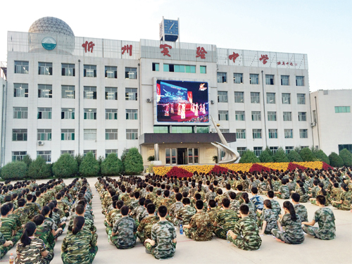 近期,我市高中陸續(xù)組織開展新生軍訓(xùn)工作,旨在通過軍事化的訓(xùn)練培養(yǎng)和增強學(xué)生國防意識、集體意識,并進一步錘煉意志,增強體質(zhì),為高中三年的學(xué)習(xí)生活打下堅實基礎(chǔ)。圖為八月二十一日,忻州市實驗中學(xué)新生在軍訓(xùn)間隙觀看學(xué)校宣傳片。(實習(xí)記者 郭浩東 攝)