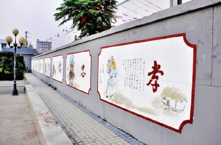 日前,我市城區(qū)創(chuàng)衛(wèi)工作如火如荼進行中,城中村街面整治作為創(chuàng)衛(wèi)工作的薄弱環(huán)節(jié),對其改造尤為重要。10月12日,記者在我市城區(qū)的逯家莊看到,創(chuàng)衛(wèi)工作人員對粉刷后的街道墻壁進行美化,一幅幅生動的“忠孝廉恥圖”,既蘊藏著文化內(nèi)涵,又起到了美觀效果,成為街頭一道靚麗的風(fēng)景線。(張志遠(yuǎn) 孫明 攝)