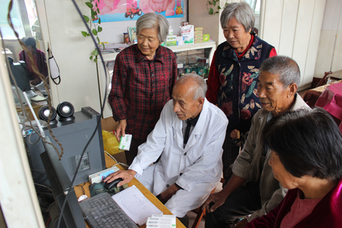 來到北義井村衛(wèi)生所,不足20平米的診療室里已經(jīng)站滿了患者。醫(yī)師張喜旺向高血壓病人李梅蘭詢問病情后又為其測(cè)量了血壓。緊接著,他打開區(qū)域衛(wèi)生信息管理平臺(tái),拿著農(nóng)村合作醫(yī)療卡在刷卡機(jī)上一刷,信息就自動(dòng)提取到平臺(tái),張喜旺結(jié)合病人病情開了電子門診處方并下藥,費(fèi)用直接從農(nóng)合醫(yī)療卡中扣除,整個(gè)過程不到十分鐘。張喜旺說,村民們大都都是奔著診療方便和藥品范圍內(nèi)免費(fèi)而來,這也大大緩解了村民看病難的問題。