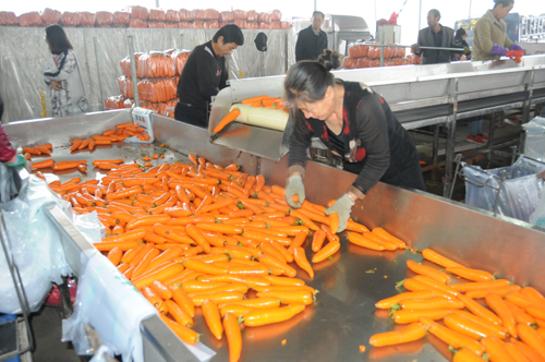 豐收季節(jié),耀入眼簾的是一顆顆閃著金黃燦爛光芒的優(yōu)質胡蘿卜,經過流水作業(yè)清洗,由員工的巧手整理包裝入袋,經包裝運往江蘇等地,帶動周邊地區(qū)近3000農戶受益。圖為綠源亨通視頻有限公司胡蘿卜流水作業(yè)生產線。(喬偉 侯曉敏)