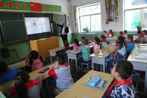 近日,在靜樂(lè)縣愛樂(lè)希望小學(xué),學(xué)生正通過(guò)交互式多媒體教學(xué)方法上課。老師高興地說(shuō):“有了多媒體真方便,以前講一個(gè)例題要花幾分鐘抄寫在黑板上,現(xiàn)在只需幾秒鐘就顯示在頻幕上,既節(jié)省時(shí)間又提高課堂效率?!苯陙?lái),該縣加大教育投資力度,改善辦學(xué)條件,為學(xué)生上課提供便利。(閆曉梅 攝)