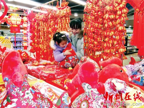 春節(jié)越來越近,我市各地迎新春氣氛越來越濃,市場上吉祥喜慶的商品琳瑯滿目,年味十足。1月10日,原平市一對(duì)母子正在挑選迎春飾品