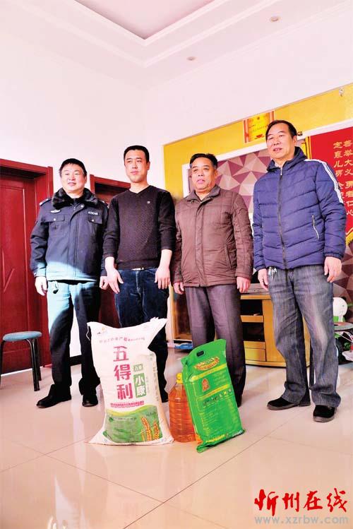 另據(jù)了解,為了鼓勵人民群眾的見義勇為行為,弘揚人間正氣和社會正能量,最大限度地保護見義勇為人員的人身安全,我市見義勇為協(xié)會自成立以來先后為兩百余名受到省、市表彰的見義勇為先進分子上了人身意外保險,每人保險期為5年。圖為市見義勇為協(xié)會領(lǐng)導(dǎo)在定襄縣南西力村慰問見義勇為先進青年智杰(魯明強)