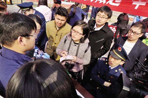 3月15日,忻州城區(qū)體育廣場上以“網(wǎng)絡(luò)誠信消費(fèi)無憂”為主題的3·15國際消費(fèi)者權(quán)益日宣傳活動(dòng)火熱進(jìn)行。活動(dòng)現(xiàn)場,各部門和企業(yè)通過發(fā)放宣傳資料、設(shè)立咨詢臺、現(xiàn)場受理群眾投訴舉報(bào)、提供服務(wù)等方式,宣傳《消費(fèi)者權(quán)益保護(hù)法》、《反不正當(dāng)競爭法》、《無照經(jīng)營查處辦法》等法律法規(guī)以及食品藥品安全、識假辨假等各類知識,吸引了眾多群眾積極參與。受理投訴臺前,陸續(xù)有消費(fèi)者前來投訴,且有不少年輕人,所反映的問題既有涉及家具、汽車等金額較大的線下消費(fèi)活動(dòng),也有通過電商平臺進(jìn)行的線上交易。市工商局、消費(fèi)者協(xié)會的工作人員將消費(fèi)者投訴的問題一一記錄在冊,并表示會盡快調(diào)查處理。本版圖片攝影 魯明強(qiáng) 王 菲
